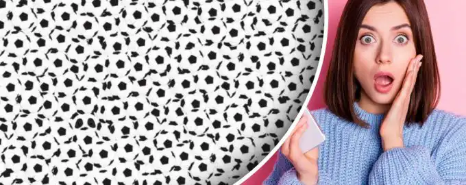 Medzi desiatkami identických čiernobielych loptičiek sa ukrýva jedna pandička. Jej silueta sa dokonale spája s okolitými guľami, no jedno malé, ale zásadné