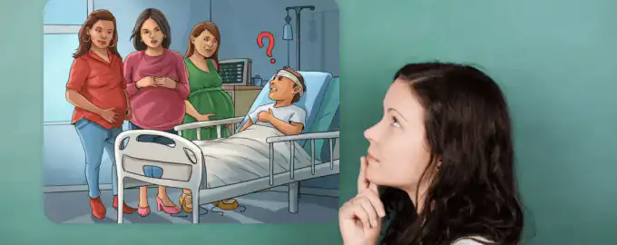 V tejto vizuálnej hádanke musíte identifikovať tehotnú manželku muža so stratou pamäti. Kľúčom nie je len veľkosť brucha, ale aj drobné, praktické detaily