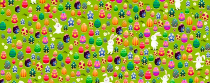 Táto veselá veľkonočná scéna so zajačikmi a vajíčkami skrýva jednu mrkvu. Nájsť ju je ťažšie, ako sa zdá, pretože sa dokonale spája s okolím.