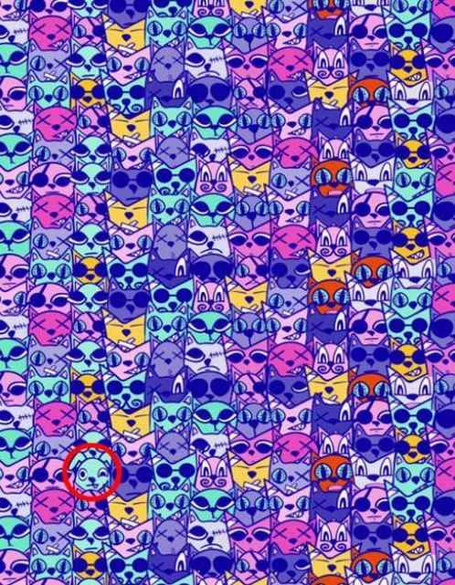 Medzi desiatkami opakujúcich sa mačiek sa ukrýva jeden pes. Úloha vyzerá jednoducho, ale opakujúci sa vizuálny vzor vás rýchlo zmätie. Kľúčom je prestať hľadať mačku a sústrediť sa na detaily, ktoré vybočujú z radu – ako je tvar uší alebo nosa.