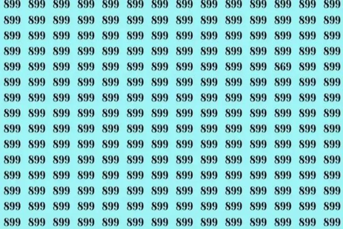 Táto optická ilúzia testuje vašu pozornosť a schopnosť rýchlej analýzy. Medzi zdanlivo identickými číslami 899 sa ukrýva jedno iné – 869. Kľúčom je nenechať sa zmiasť opakujúcim sa vzorom a sústrediť sa na detaily každého jednotlivého symbolu.