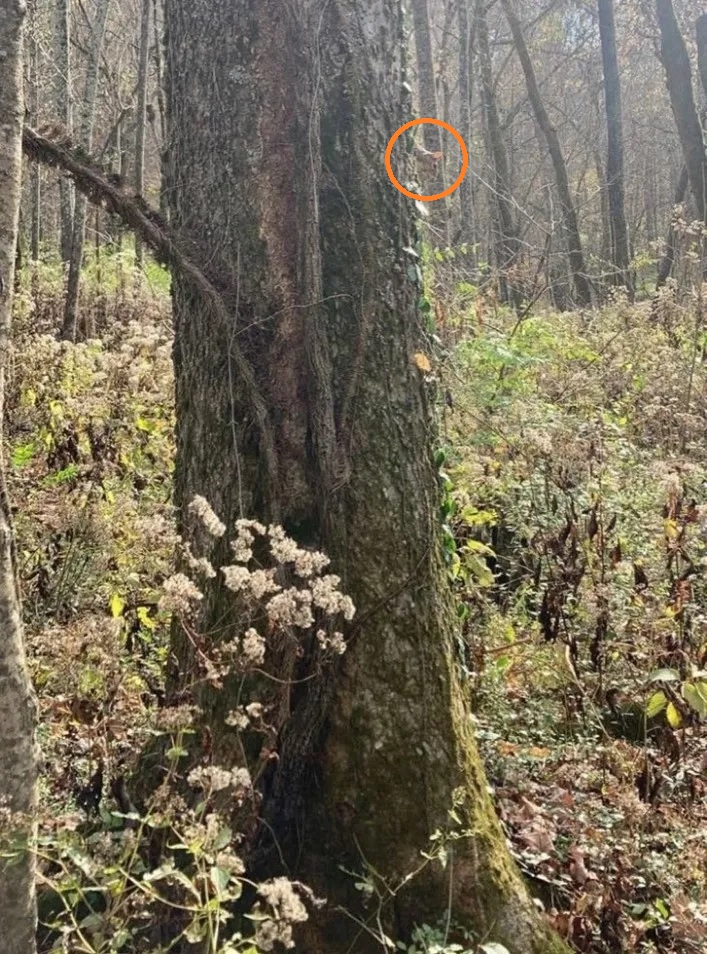 Čas vypršal? Poďme na to spolu. Riešenie nespočíva v hľadaní celej veveričky, ale v rozpoznaní jej časti. Ak sa pozriete na stred obrázku, na hlavný kmeň, všimnete si, že vzor kôry nie je úplne konzistentný. Konkrétne, v pravej časti kmeňa, približne v jeho strede, je „výčnelok“, ktorý pri bližšom pohľade nie je súčasťou dreva. Toto je chvost a časť tela veveričky. Jej hlava je sklonená a priľahlá ku kmeňu, čím sa stáva takmer neviditeľnou. Celé zviera je otočené chrbtom k pozorovateľovi a splynie s textúrou stromu.