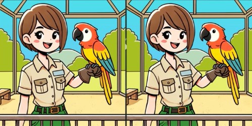 Pozrite sa na obrázok nižšie. Vidíte dievča s papagájom? Teraz sa pozorne zadívajte. Rozdiely nie sú veľké ani krikľavé. Môže ísť o zmenu farby, chýbajúci či pridatý detail, alebo nepatrnú zmenu v tvare. Čas beží… 17, 16, 15…