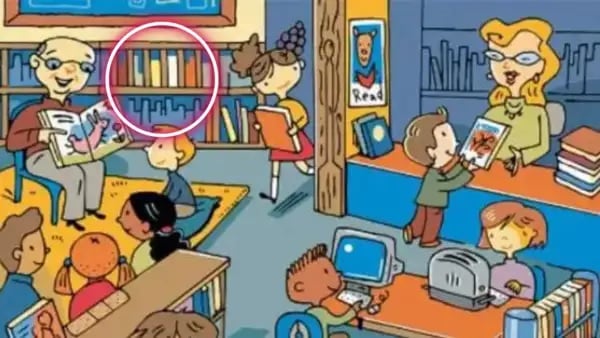 Predstavte si, že ste v knižnici plnej detí. Niektoré čítajú, iné sú pri počítačoch. Váš úkol je rýchlo nájsť rebrík, ktorý je však majstrovsky začlenený do prostredia. Na prvý pohľad ho možno neuvidíte, pretože vaše očakávania môžu byť klamavé. Toto je test pozornosti a schopnosti prekonať očakávania.