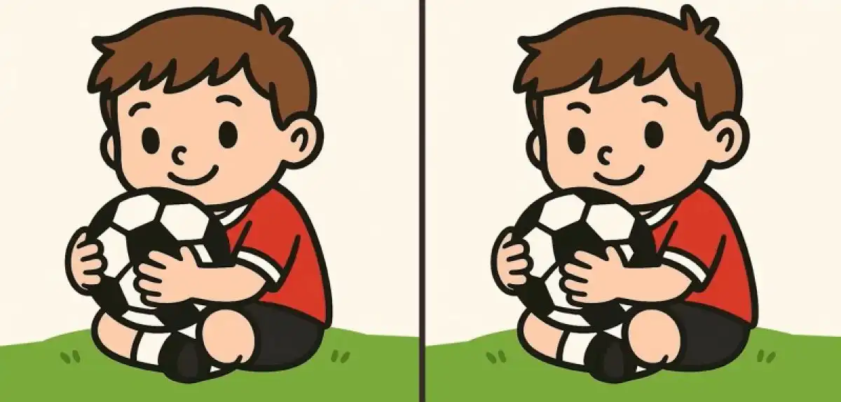 Na obrázku vidíte chlapca, ktorý sa chystá kopnúť do futbalovej lopty. Scéna pôsobí jednoducho, ale práve v jednoduchosti sa často ukrývajú tie najzáludnejšie rozdiely. Nejedná sa o zjavné chyby, ale o drobné zmeny, ktoré vyžadujú ostrý zrak. Skúste to najprv sami bez pomoci – zastavte čas a vnútorne sa sústredte. Kde by sa mohla skrývať nezhoda? Možno v odtieňoch, tvaroch alebo polohách predmetov?
