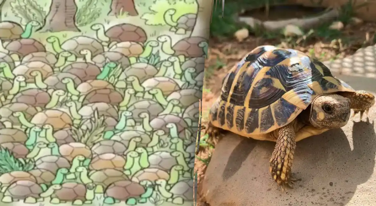 Medzi desiatkami korytnačiek v lese sa dokonale zamaskoval jeden had. Vašou úlohou je odhaliť ho za 25 sekúnd. Kľúčom je opustiť očakávania a hľadať niečo, čo nemá pancier.