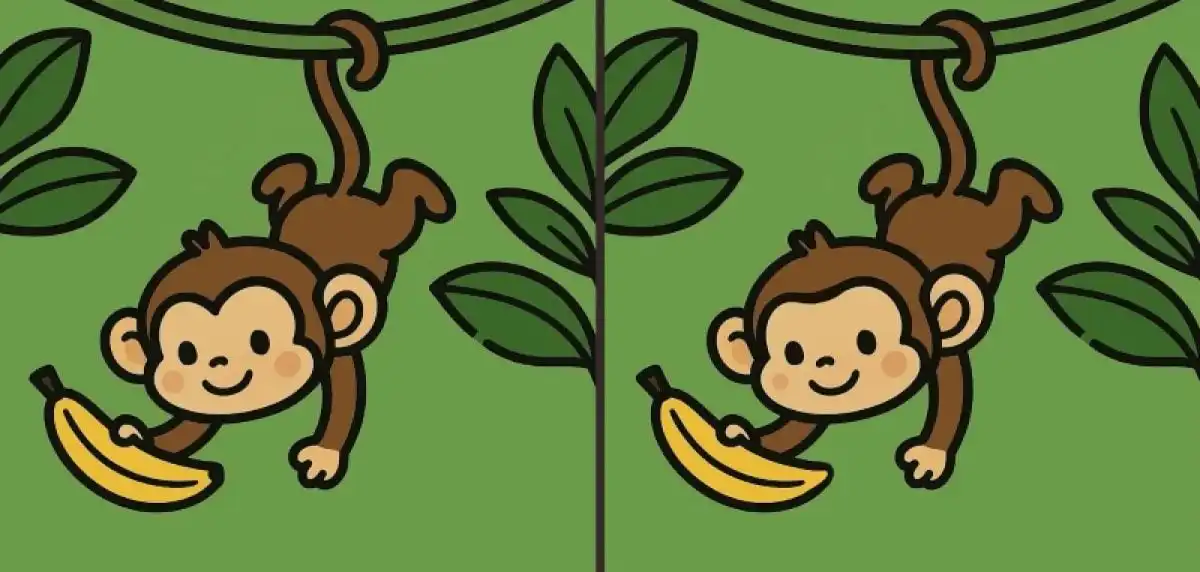 Dokážete nájsť tri malé rozdiely medzi dvoma zdanlivo rovnakými obrázkami opice na strome? Táto klasická hádanka testuje vašu pozornosť a rýchlosť. Kľúčom je systematické skenovanie obrazu po častiach.