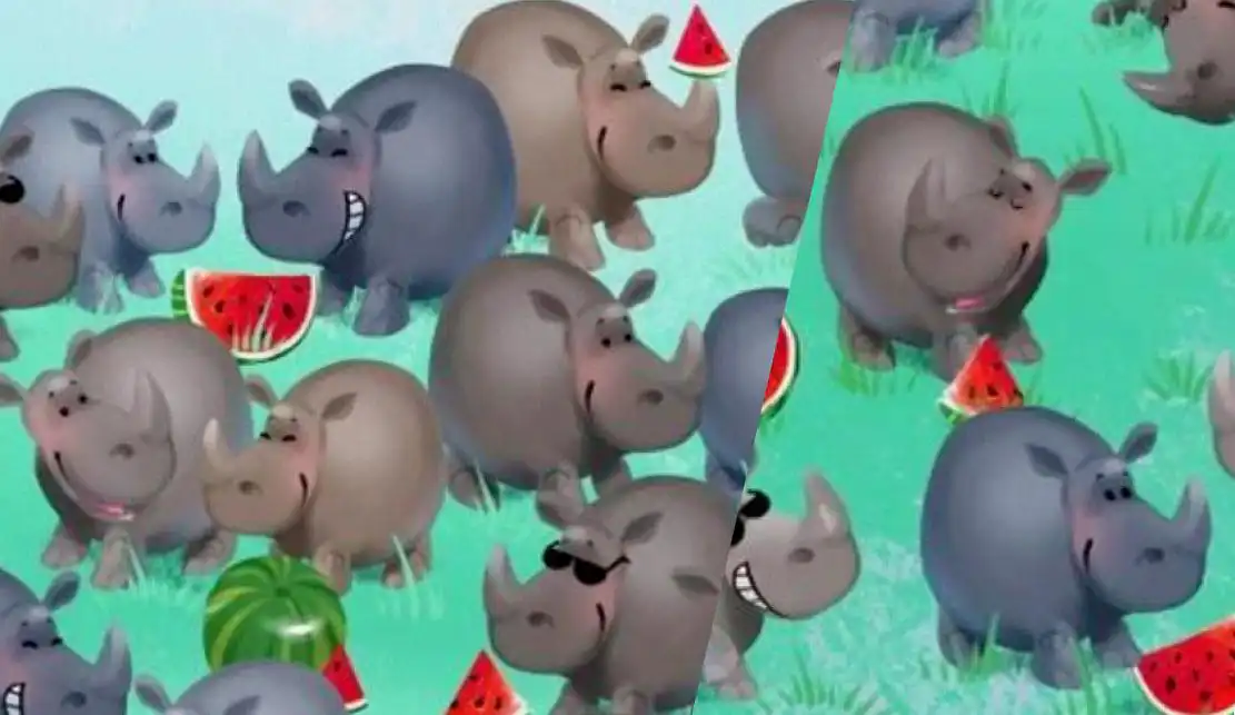 Predstavte si, že ste na safari a pozorujete pokojné stádo nosorožcov. Všetky postavy vyzerajú na prvý pohľad rovnako, tvoria jednotný, šedivý obrazec. Vašou úlohou je však narušiť tento dojem a nájsť jediného hrocha, ktorý sa medzi nich vkradol. Ide o skutočnú skúšku všímavosti a rýchlosti vnímania. Mnohí ľudia potrebujú na vyriešenie viac ako pol minúty, ale hovorí sa, že tí s bystrým zrakom a logickým uvažovaním to zvládnu za menej ako 11 sekúnd. Ste na to pripravení?