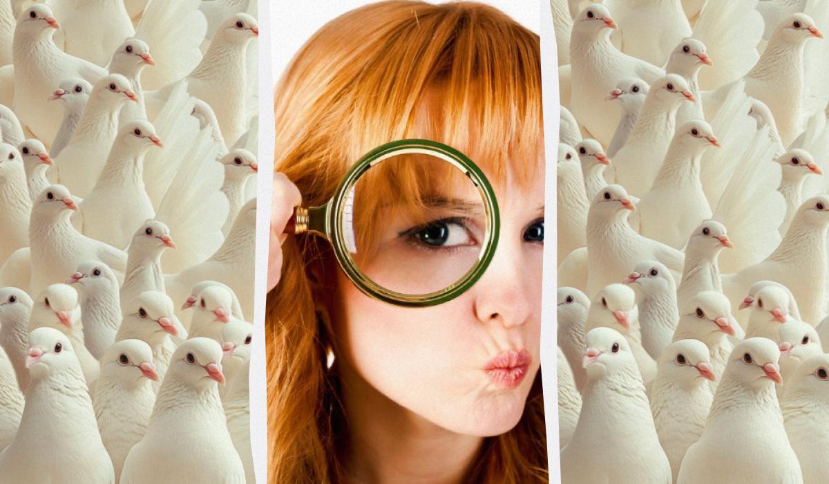 Táto vizuálna hádanka vás vyzýva, aby ste v roji bielych holubov našli jediného kohúta. Všetky vtáky sú si podobné, ale jeden z nich má jemné, no kľúčové rozdiely. Kľúčom je pozrieť sa na obrázok inak – nie ako na celok, ale skenovať ho po menších sekciách.