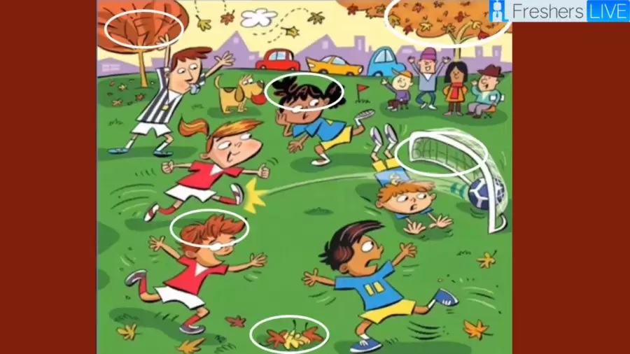 Na obrázku futbalového zápasu je ukrytých šesť anglických slov. Kľúčom k ich nájdeniu je pozorovať detaily, ktoré na prvý pohľat splynú s prostredím – ako sú vetvy stromov, lístie alebo vlasy detí. Skúste ich nájsť skôr, ako si prečítate riešenie!