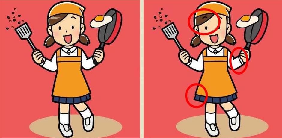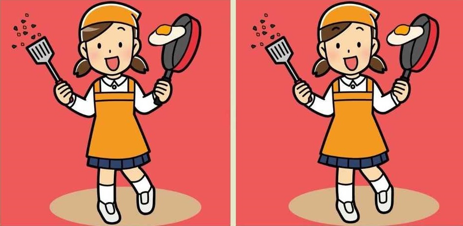 Pozrite sa na obrázky vyššie. Na prvý pohľad vyzerajú úplne rovnako: to isté dievča, tá istá kuchyňa, ten istý moment, keď sa vajíčko chystá spadnúť z panvice. Ale niečo tu nesedí. Tri detaily boli zmenené. Vašou úlohou je ich odhaliť čo najrýchlejšie. Takéto úlohy sú výborným tréningom pozornosti a rýchleho vnímania. Ste pripravení otestovať svoje oči? Spustite stopky a pozerajte sa pozorne!