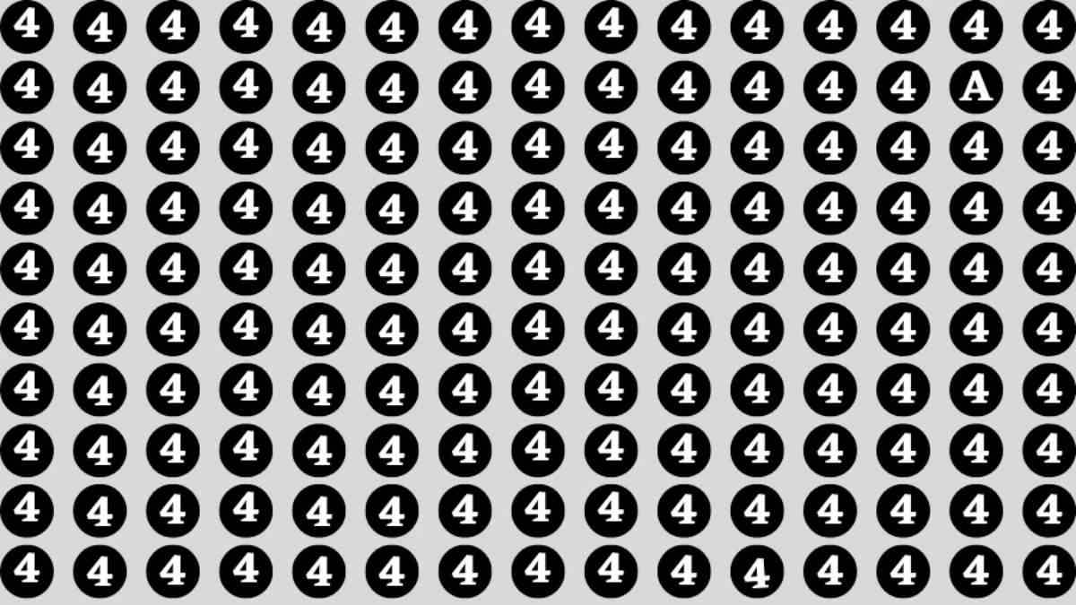 V tejto optickej ilúzii sa medzi množstvom číslic „4“ skrýva jedno písmeno „A“. Úlohou je nájsť ho čo najrýchlejšie. Kľúčom je pozrieť sa na obrázok ako celok a hľadať narušenie opakujúceho sa vzoru.
