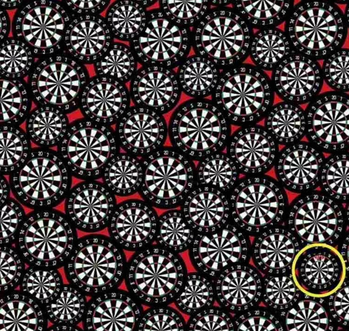 Táto optická ilúzia vás vyzýva, aby ste medzi množstvom terčov našli tri skryté červené šípky za 15 sekúnd. Kľúčom je ignorovať rušivé červené prvky a sústrediť sa na tvar – všetky sú na jednom mieste.
