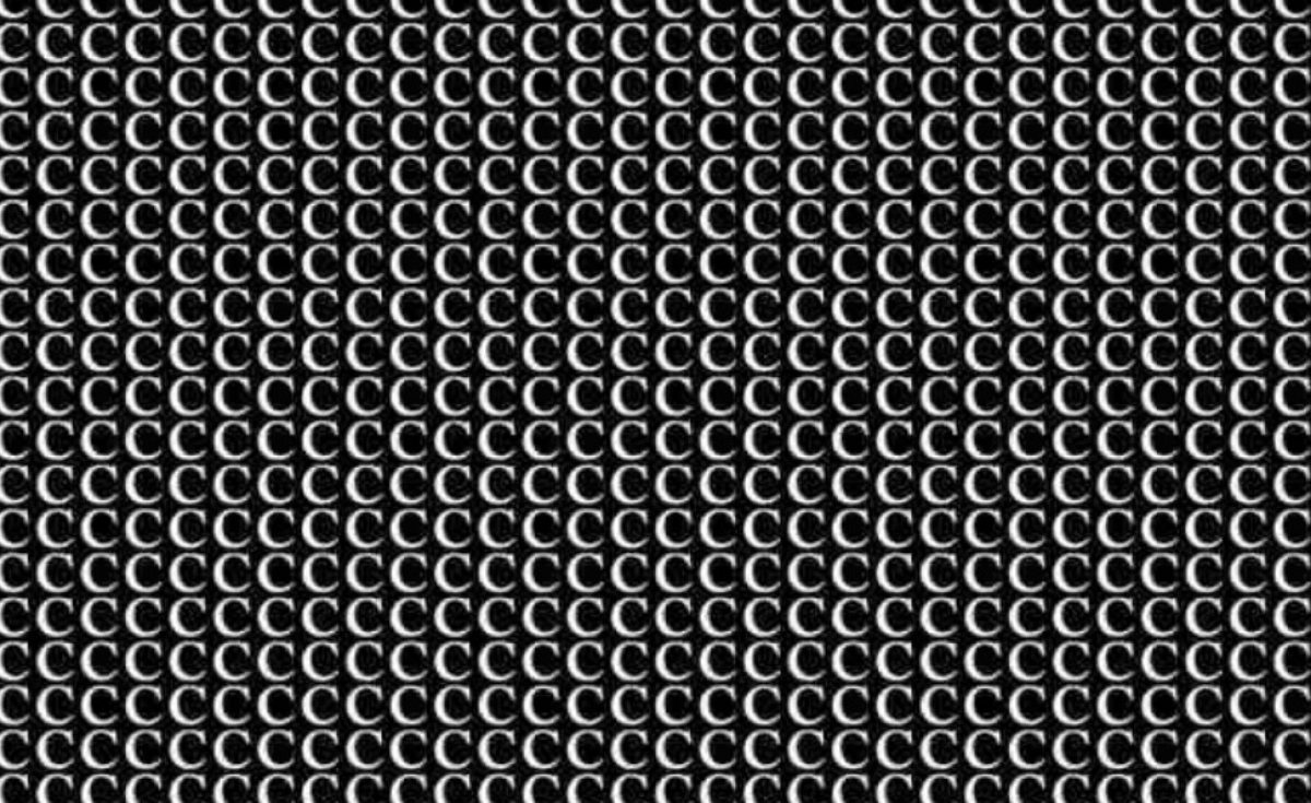 V optickej ilúzii plnej písmen „C“ sa ukrýva jedno písmeno „G“. Dokážete ho nájsť za menej ako 5 sekúnd? Kľúčom je zmeniť svoj pohľad a nesústrediť sa na každý znak individuálne.