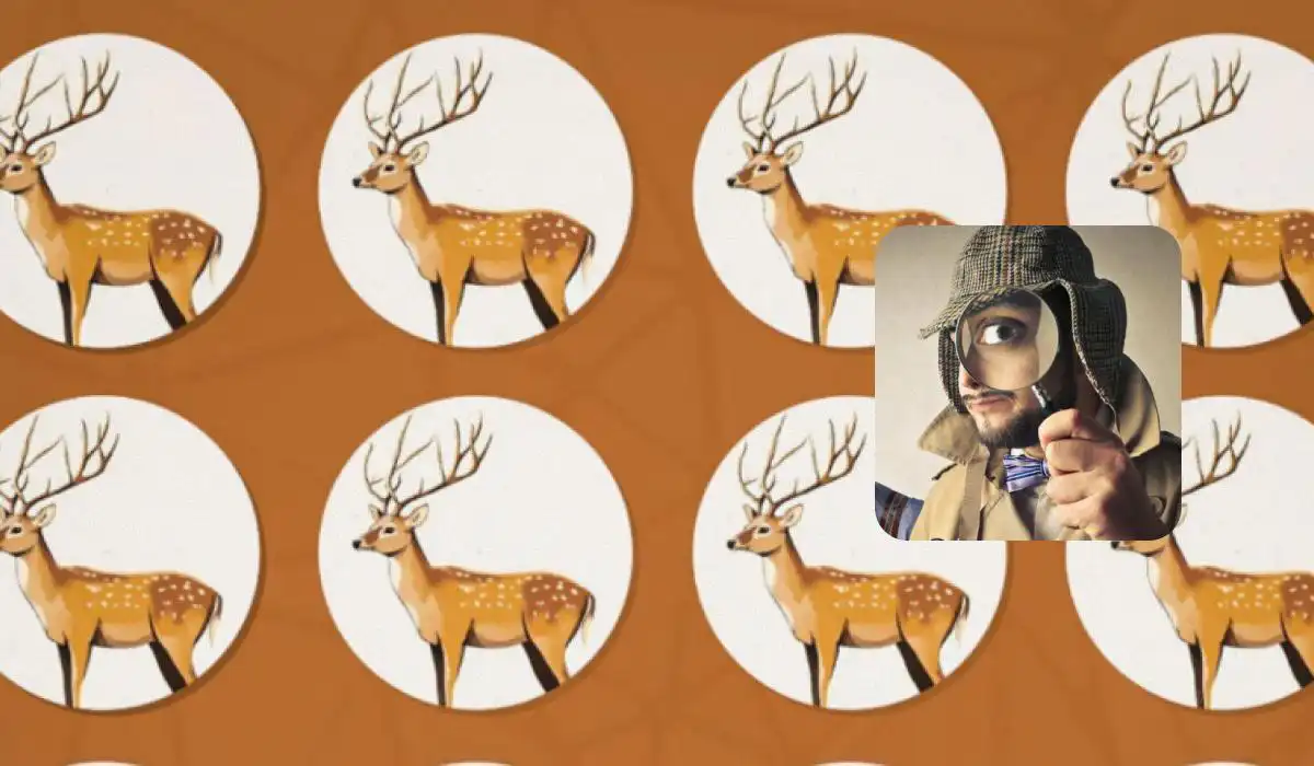 Postupne prejdite očami od každého jeleňa k jeleňovi a pýtajte sa: „Má dve uši?“ Väčšina áno. Ale jeden z nich, konkrétne ten v strede vpravo (približne piaty z pravej strany), má jasne viditeľné len jedno ucho. Jeho ľavé ucho chýba. To je ten rozdiel, ktorý ste hľadali. Ilúzia jednotnosti je prelomená.