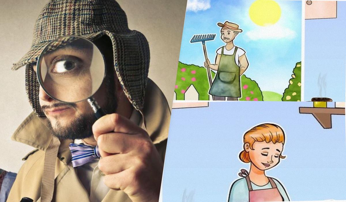Predstavte si, že ste detektívom, ktorého zavolali do veľkého kaštieľa. Stala sa tu krádež a máte dvoch podozrivých: záhradníka a kuchárku. Obojí tvrdia, že celý čas pracovali – záhradník na záhrade a kuchárka v kuchyni. Polícia ich vypočúva, ale vy máte pred sebou ich portrét. Nemusíte klásť otázky, stačí sa pozrieť. Všetky dôležité dôkazy sú už na obrázku. Dokážete odhaliť, kto klame a kto je skutočným zlodejom?