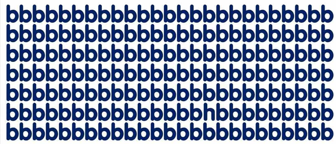 Medzi radami písmena ‚b‘ sa ukrýva jedno, ktoré je iné. Toto nie je test na zrak, ale na pozornosť a schopnosť vidieť celok, namiesto jednotlivostí. Kľúčom je zmeniť uhol pohľadu.