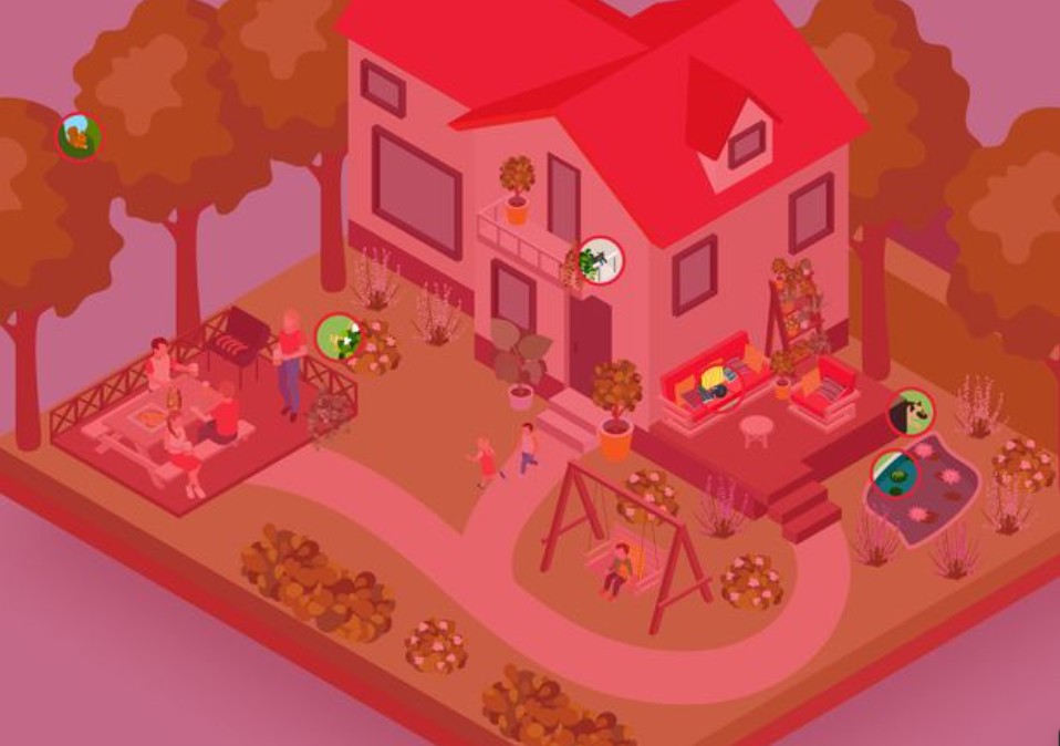 – Konkrétne miesta: kvetináč vľavo, vzor na šate dievčatka v strede, plameň grilu, vzor na tričku chlapca.