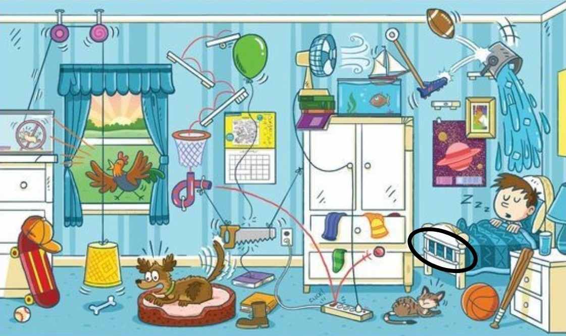 V preplnenej izbe plnej predmetov sa ukrýva jeden dôležitý detail – drevený rebrík. Dokážete ho nájsť za 12 sekúnd? Kľúčom je ignorovať chaos a sústrediť sa na tvary, ktoré do scény nezapadajú.