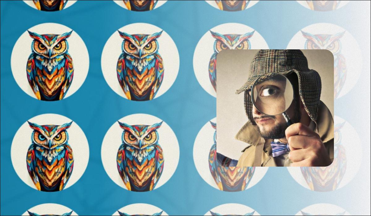 Medzi desiatkami identických sov sa ukrýva jedna, ktorá sa odlišuje detailom, ktorý možno prehliadnuť. Kľúč k jej nájdeniu spočíva v systematickom skenovaní obrazu a porovnávaní každého páru.