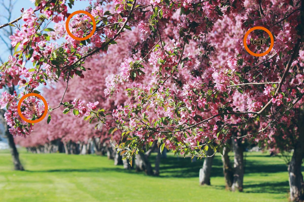 Predstavte si, že ste na jarnom výlete a zastavíte sa obdivovať krásny kvetúci strom. Vtom si spomeniete, že tu údajne boli videné tri veľmi prefíkané včely, ktoré sa vôbec nechcú ukázať. Vaša výzva? Nájsť ich všetky skôr, ako odletia – máte na to len 12 sekúnd. Obrázok je plný jemných detailov a podobných tvarov, kde sa každý okvetný lístok môže zdať ako krídlo. Táto optická ilúzia testuje vašu pozornosť a schopnosť rozlíšiť patron od náhodnosti.