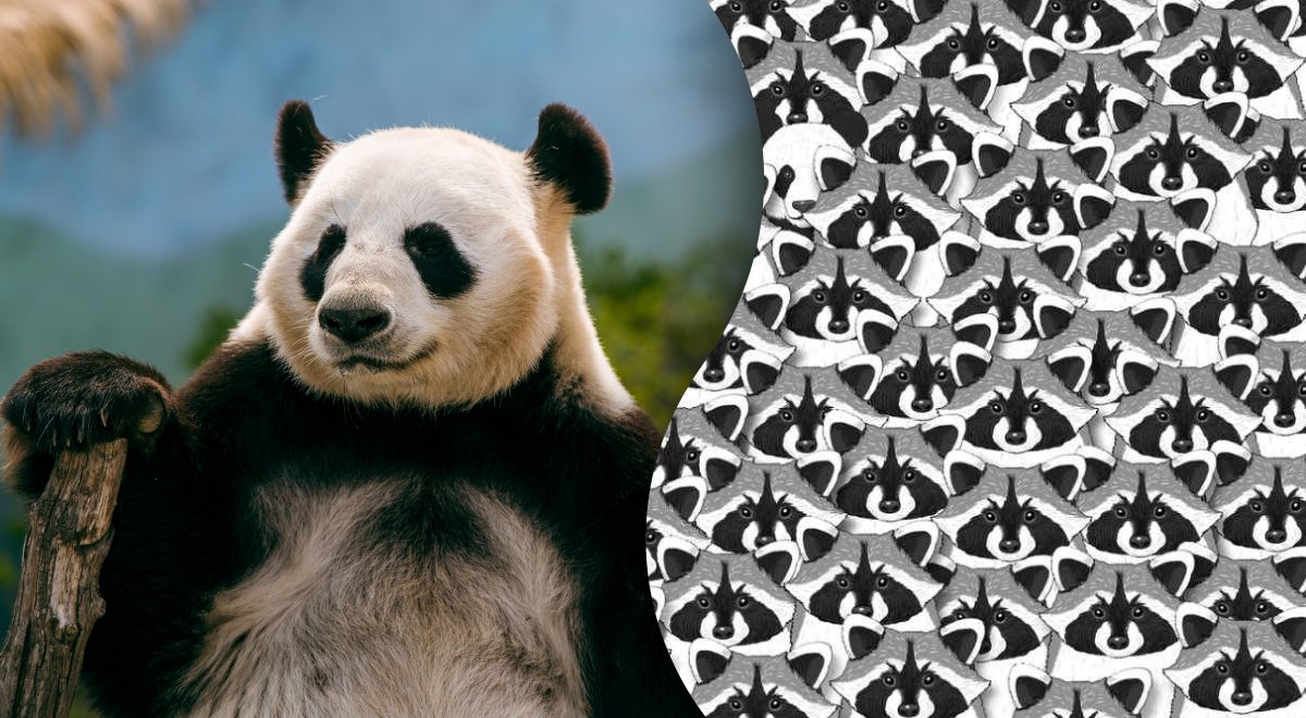 Nenechajte sa zahltiť množstvom huňatých chvostov a typických mývalích masiek. Pandy a mývaly zdieľajú čiernobielu farbu, čo je ideálny základ pre optický klam. Rozdiel je v proporciách a vzorcoch.
