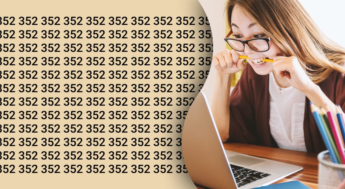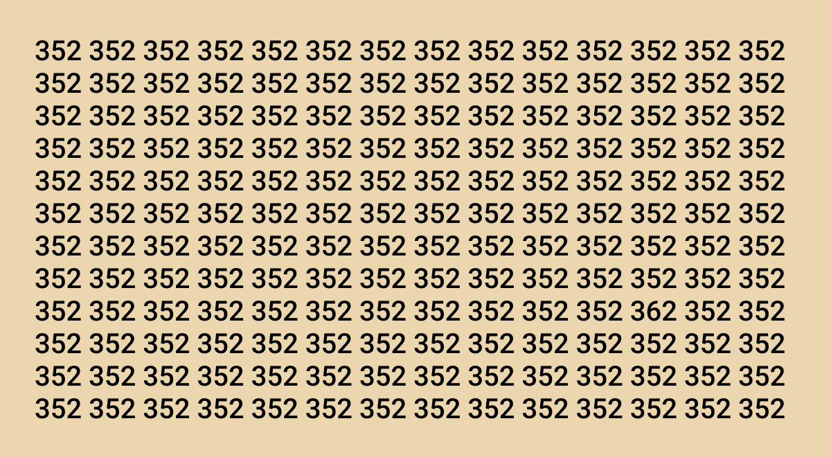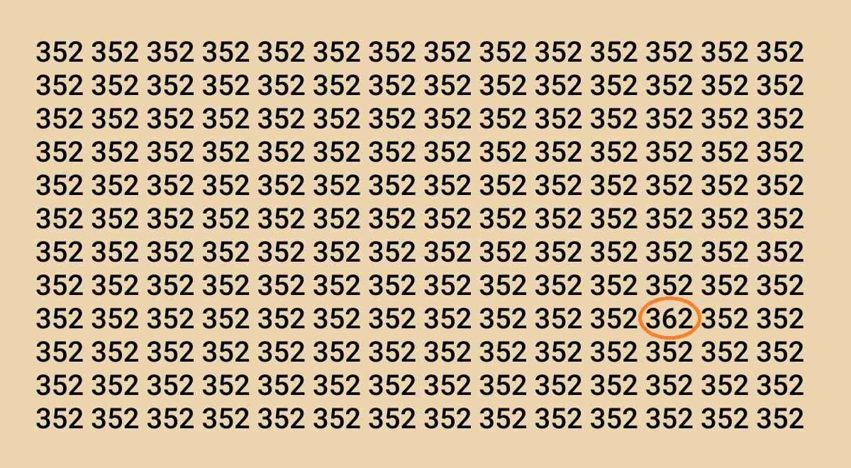 Medzi zdanlivo nekonečným poľom čísel 352 sa ukrýva jediné číslo 362. Úlohou je ho nájsť za 8 sekúnd. Kľúčom je systematické prehľadávanie a schopnosť ignorovať rušivý vizuálny šum.