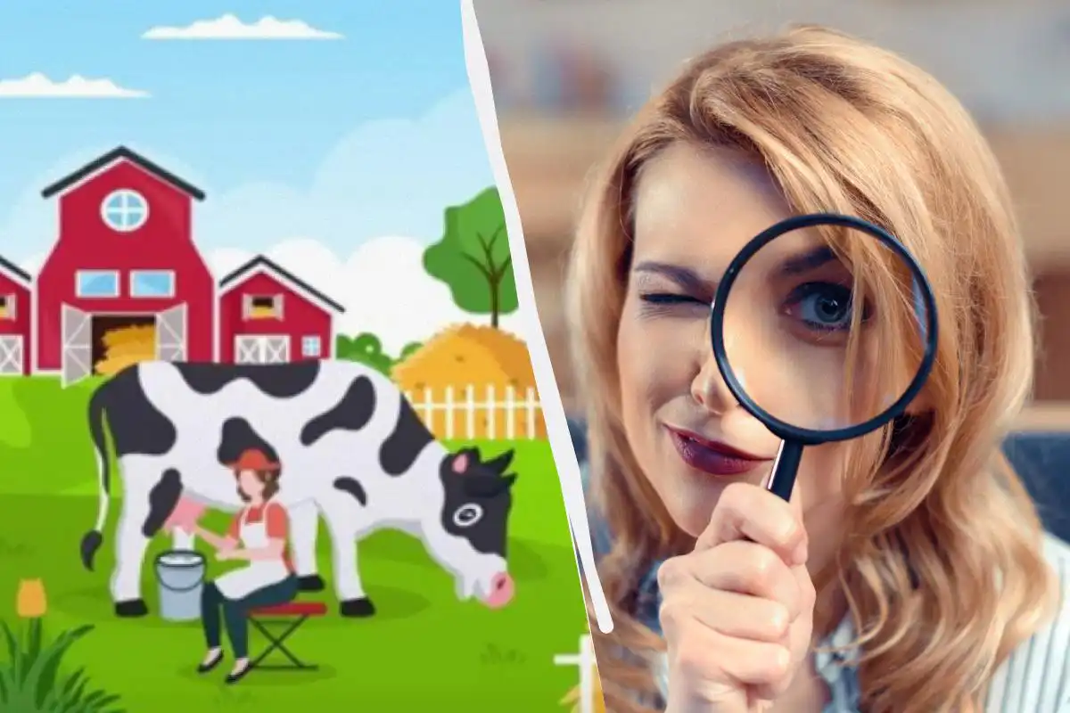 Predstavte si, že ste kontrolór kvality pre staré puzzle knihy. Dostali ste dve kópie toho istého obrázka idylického vidieka, kde žena dojí kravu. Vydavateľ tvrdí, že sú totožné, ale vy tušíte, že niekde sa vloudila chyba. Vašou úlohou je nájsť všetky tri rozdiely za menej ako 20 sekúnd. Čas tiká. Sústreďte sa a pozorne si prezrite obrázky nižšie. Skúste ich vyriešiť sami, kým sa pozriete na nápovedy!