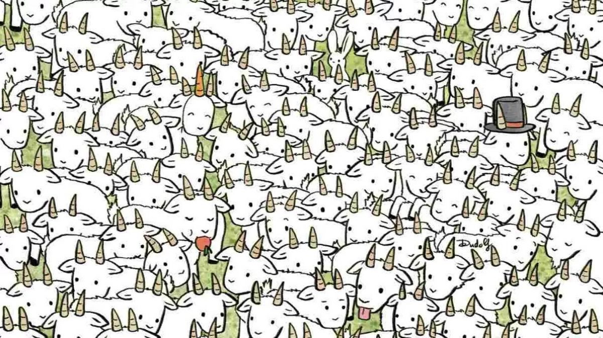 Stojíte pred poľom plným zvierat. Všetky vyzerajú takmer rovnako, všetko sú kozy… alebo nie? Úloha znie jasne: v tomto mori kôz sa ukrýva jedna jediná ovca. Máte len 5 sekúnd na to, aby ste ju odhalili. Ide o skúšku vášho zraku a rýchlosti vnímania. Obrázok je zámerne navrhnutý tak, aby vás zmiatol – opakujúce sa tvary vytvárajú ilúziu uniformity. Ale ak zastavíte a sústredíte sa, rozdiel vypláva na povrch.
