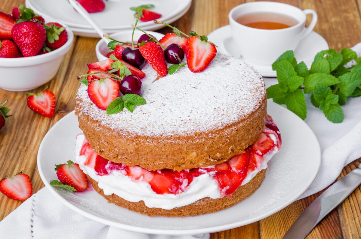 Ilustračný obrázok tradičného koláča Victoria Sponge.