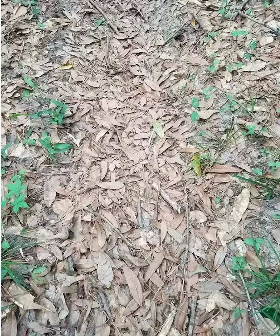 Stále nevidíte? Tu je konkrétnejšia nápoveda: Pozrite sa na oblasť mierne vľavo od stredu. Medzi suchými, zvlnenými listami je jeden „prvok“, ktorý má hladší, viac valcovitý tvar. Jeho farba je identická, ale jeho forma je mierne anomálna.