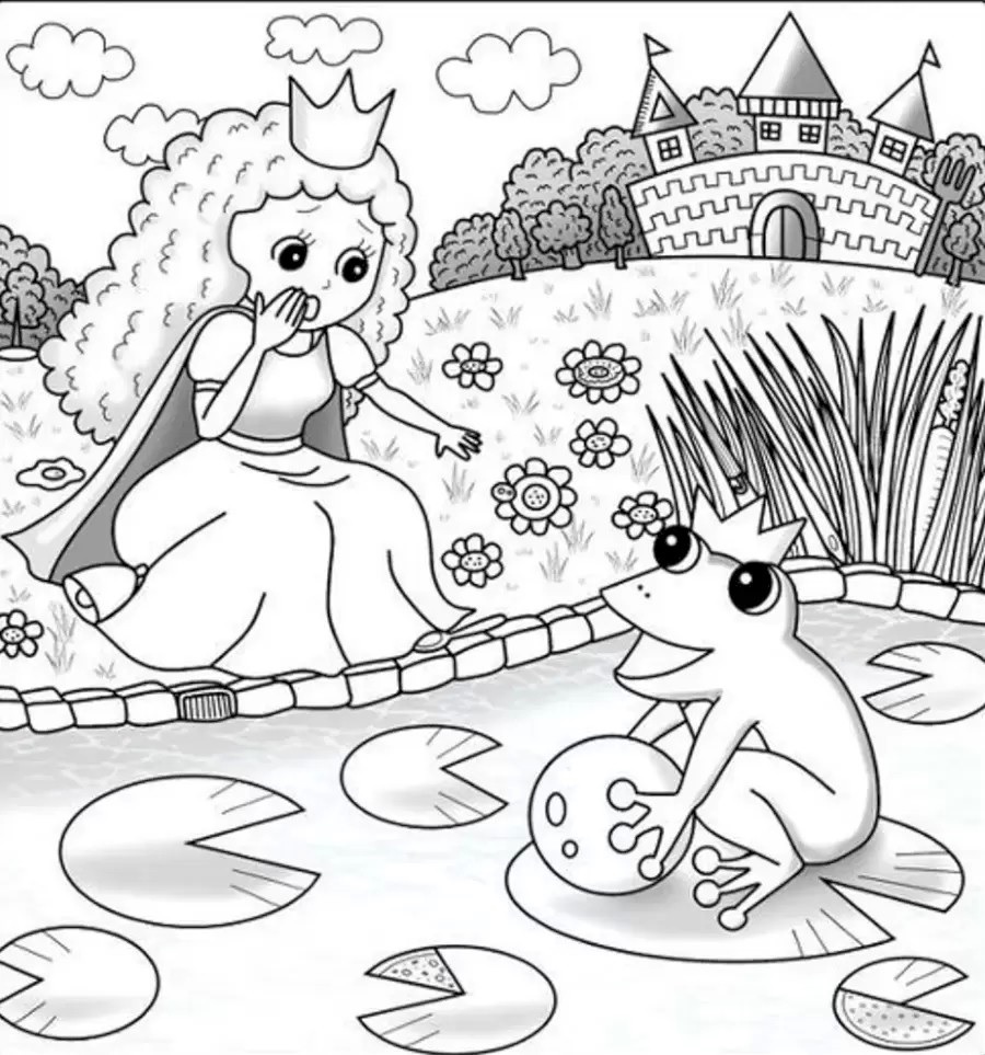 Teraz si vyskúšajte rýchlu rozcvičku mozgu: Na obrázku s princeznou je okrem prsteňa ešte jeden predmet, ktorý by tam podľa klasickej rozprávky nemal byť. Viete, ktorý? (Odpoveď: Žaba drží modernú loptu, čo je neštandardný prvok pre rozprávkový svet).