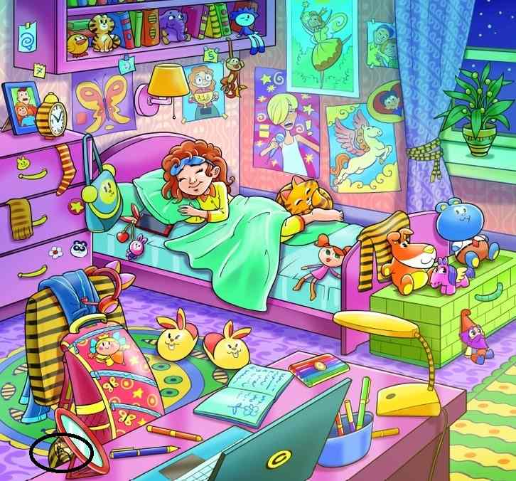 Predstav si pokojnú detskú izbu v noci. Dievčatko spokojne spí, okolo nej je rozmiestnených množstvo hračiek – medvedíkov, lôpt, autíčok. Steny sú polepené farebnými obrázkami a cez okno vykukuje hviezdna obloha. Všetko vyzerá byť na svojom mieste. Ale niečo tu nepatrí. Niekde v tejto idylickej scéne sa ukrýva malá včela. Úloha znie jednoducho: nájsť ju. Časový limit pre skutočných pátračov je iba 7 sekúnd. Táto výzva testuje tvoju schopnosť rýchlo skenovať obraz a rozpoznať anomáliu v známom prostredí.
