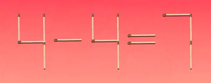 Tento klasický hlavolam so zápalkami testuje vaše laterálne myslenie. Zdánlivo nemožnú rovnicu 4-4=7 dokážete opraviť presunutím jedinej zápalky, ak prestanete