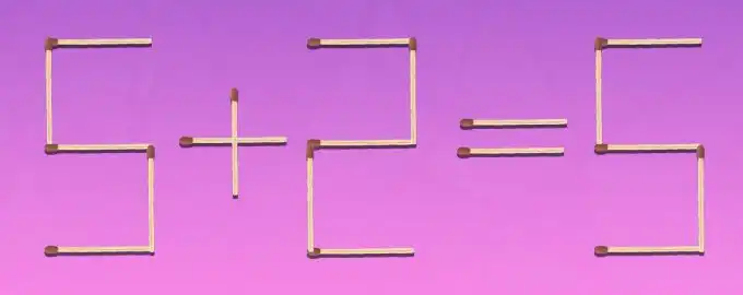 Táto hádanka so zápalkami vyzerá jednoducho: 5+2=5. Je jasné, že výsledok je nesprávny. Vašou úlohou je opraviť rovnosť presunutím iba jednej zápalky.