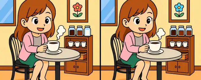 Dve takmer identické scény s dievčaťom popíjajúcim kávu skrývajú tri jemné rozdiely. Dokážete ich všetky odhaliť za menej ako 20 sekúnd?